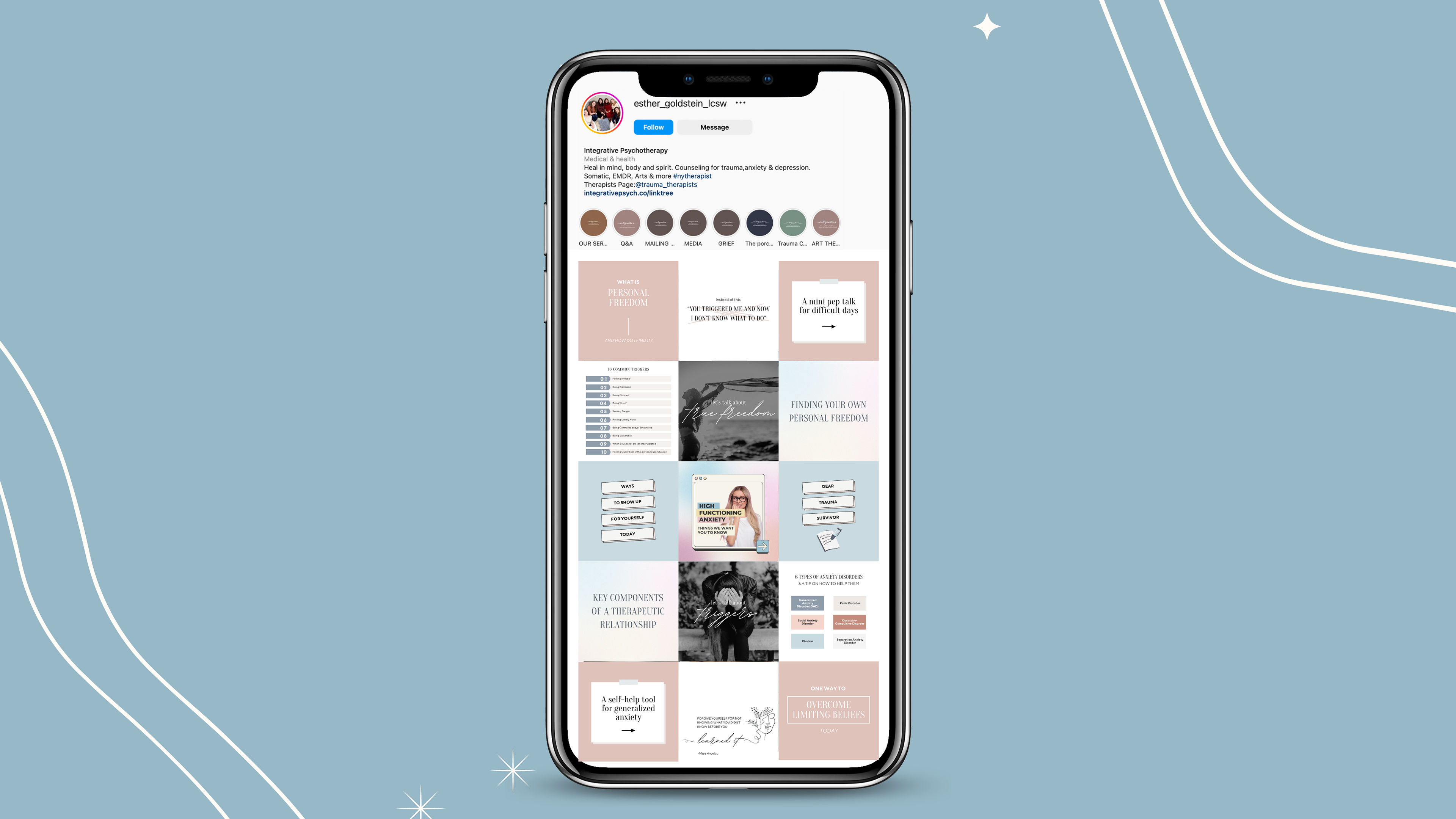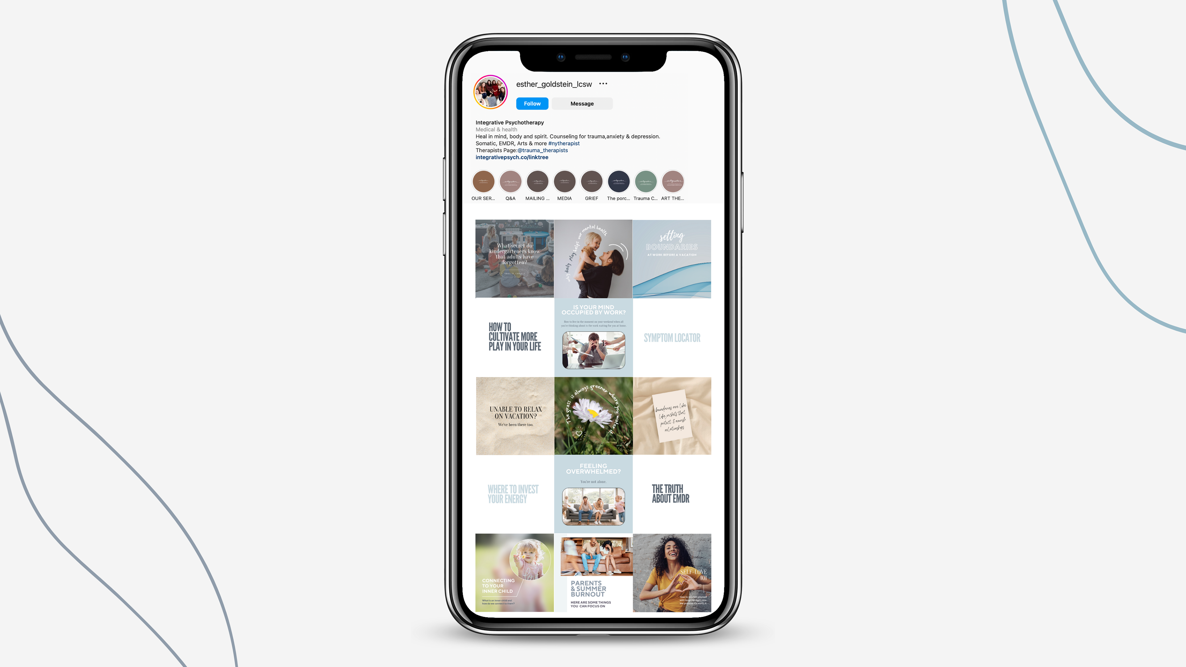 While working for Kind By Design NYC, I created ongoing social media content and strategy for Integrative Psychotherapy. Through graphic design and strategy, we were able to start growing their social media accounts.